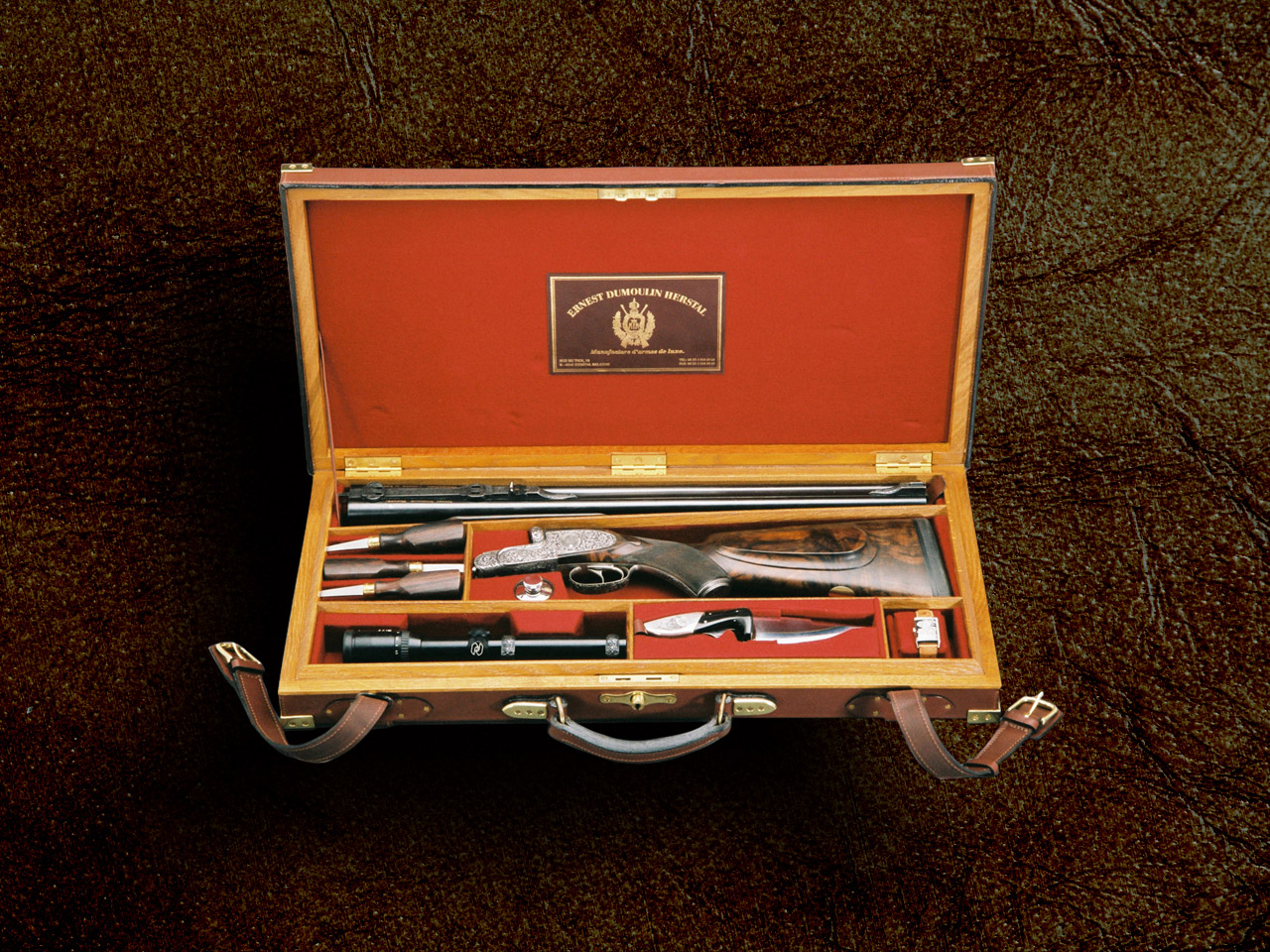 Founded by Henri Dumoulin, studied at Francotte from 1935, the Dumoulin d’Herstal house quickly distinguished itself through the exceptional quality of its bolt-action rifles. In 1969, his son Ernest Dumoulin carried forward the family legacy by developing bolt-action rifles and double express rifles world renowned for their elegance and robustness.